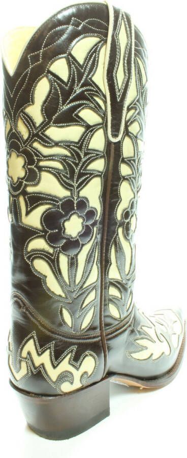 Voor liefhebbers van westernstyle. Deze handgemaakte Sendra laars is met oog voor de fijnste details vervaardigd. De uitgesneden motieven in de bovenste leerlaag vormen een goed contrast met het vanille kleurige leer. Ook in de combinatie rood met vanille: 5529 rood Kleur en Materiaal: Het kenmerk van handwerk is dat er altijd kleine verschillen zijn. Er zijn geen twee laarzen of riemen precies hetzelfde. We verkopen leer en dat heeft de charme van kleine variaties, daaraan herken je de echtheid van leer. De laarzen en riemen worden door Sendra Boots vaak behandeld met een dun laagje olie. Daardoor kan het leer van je nieuwe laars of riem donkerder zijn. Dit verdwijnt in het dragen. Wil je direct de uiteindelijke kleur te zien, kan je het leer een beetje buigen. Als je de laarzen of riemen poetst worden ze weer wat donkerder. Kleur weergave is mede afhankelijk van jouw persoonlijke scherminstellingen. Afmetingen: Hakhoogte ca: 3 cm (gemeten aan de binnenzijde van de hak) Schachthoogte ca: 30 cm (gemeten aan de zijkant, vanaf de zool) Schachtwijdte ca: 33 cm