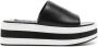 Zwart/wit, kalfsleer, tweekleurig detail, binnenzool met merk en plateauzool.