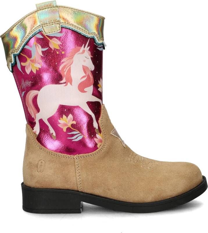 Zo'n gave unicorn laars is de droom van ieder meisje! Deze beige Shoesme laars is gemaakt van leer en je stapt er heel makkelijk in door de ritssluiting.