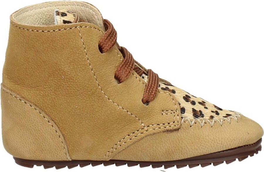 Bruin babyschoentje met leopard print op de bovenkant van het merk Shoesme. Deze kleine schoentjes zijn gemaakt van leer en kunstof en hebben een soepele loopzool gemaakt van kunststof. De schoen heeft een vetersluiting. Het perfecte schoentje om de eerste stapjes mee te zetten!
