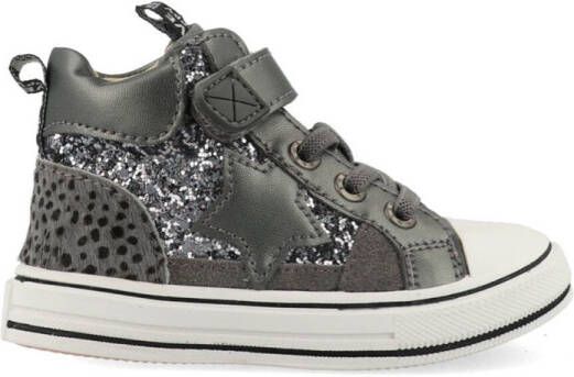 Deze sneakers zijn een musthave voor alle glitter & glamour girls! Deze stoere grijze sneakers met glitterdetails en ponyhair luipaard print zijn perfect voor kids die het lopen al goed onder de knie hebben en ervan houden om te rennen en ravotten. De 100% rubberen witte zool biedt goede bescherming op de neuzen en geeft door de zwarte details de sneakers een coole look. De sneakers zijn volledig in leer uitgevoerd met een leuke ster op de zijkant. Ze hebben een makkelijke elastieke veter en klittenbandsluiting en een uitneembaar voetbed. • Speciaal ontwikkeld voor uren speelplezier • Extra kidsproof dankzij een rubberen stootneus • Perfecte pasvorm door eigen ontwikkelde leesten • Handgemaakte sportieve sneakers • Gemaakt van chroomvrij leer