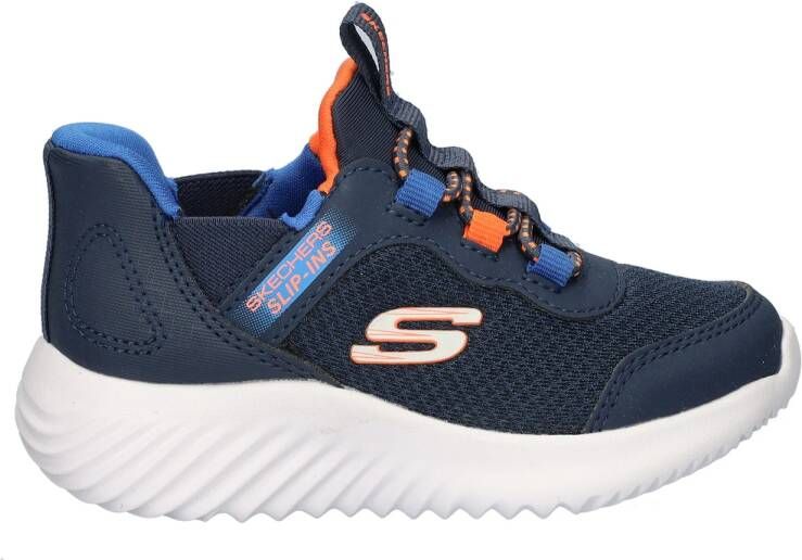 Skechers Hands Free Slip-In Bounder jongens sneaker Deze stoere sneakers trekken je kids dankzij de Hands Free Slip-In technologie zonder problemen aan! Uitgevoerd in textiel en imitatieleer. Door de Hands Free Slip-in technologie wat bestaat uit een verstevigde hielkap en verdikte hielkraag kan de schoen hands-free aangedaan worden zonder dat de hielkap stuk gaat. Voorzien van een Air-Cooled Memoryfoam voetbed wat naast goede demping ook zorgt voor een snelle warmte en vocht afvoer. Uitgevoerd met een loopzool van rubber die zorgt voor voldoende demping. Ook heeft de loopzool een schokabsorberende werking door de EVA-schuimmix. Zijn ze vies geworden dan kun je ze makkelijk wassen in de wasmachine! Lees wel eerst de wasvoorschriften.