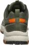 Skechers Hillcrest heren wandelschoenen. Gemaakt van leer en textiel, een binnenwerk van textiel en een stevige profielzool. De groenkleurige wandelschoenen hebben een vetersluiting en door het hiellusje stap je makkelijk in de schoenen, en trek je ze na een stevige wandeling makkelijk weer uit. De wandelschoenen hebben een comfortabel voetbed van textiel. Deze bevat memory foam en is niet uitneembaar. Voorzien van oranje accenten op de hiel en in de profielzool. De wandelschoenen van Skechers zijn waterafstotend en hebben een grove zool van rubber die grip en demping biedt op verschillende ondergronden. Categorie A wandelschoenen zijn laag van model, soepel en licht. Ze zijn geschikt om te wandelen op verhard of licht onverhard terrein. Wandelschoenen uit categorie A kun je gebruiken tijdens het lopen van een vierdaagse of tijdens een wandeling door het bos of op het strand.
