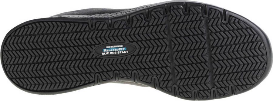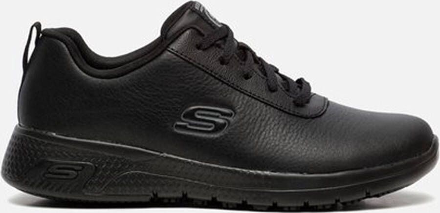 De zwarte Skechers Work Marsing Gmina sneakers zijn stevige werkschoenen. Dit model is gemaakt van leer en heeft een voering en binnenzool van textiel. Dankzij de Memory Foam binnenzool lopen de schoenen enorm comfortabel en geniet je van demping bij iedere stap. De Relaxed Fit zorgt voor bewegingsvrijheid voor optimaal draagcomfort. De rubberen buitenzool biedt grip en flexibiliteit en is voorzien van anti-slip. De zwarte Skechers Work Marsing Gmina sneakers hebben een vast voetbed.