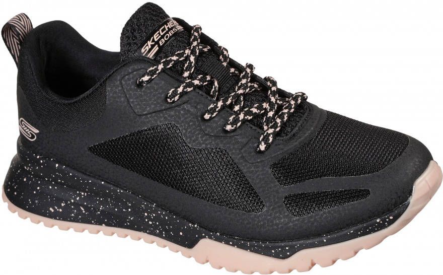Deze zwarte Skechers Bobs Squad 3 Star Flight sneakers zijn gemaakt van synthetisch materiaal. De voering is gemaakt van textiel, net als de comfortabele binnenzool. Ter decoratie zijn roze accenten en merkopdrukken aangebracht. Door middel van een veter is de schoen de sluiten. Het aantreklusje aan de achterkant helpt je bij het instappen. Het Memory Foam voetbed absorbeert schokken en werkt ventilerend. De zool is gemaakt van rubber en heeft een dikte van 3 centimeter. Goed om te weten: het voetbed van deze zwarte Skechers Bobs Squad 3 Star Flight sneakers is niet uitneembaar.