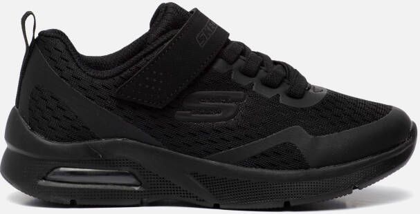 Zwarte Skechers Microspec Max kinder sneakers. Gemaakt van imitatieleer, een binnenwerk van textiel en een stevige profielzool. De sneakers hebben elastische veters met klittenbandsluiting en een hiellusje voor een makkelijke instap. Het vaste voetbed is gemaakt van textiel. De Skechers Microspec Max hebben mesh inzetten en merkopdrukken op het bovenwerk en een zwarte zool met air-compartiment