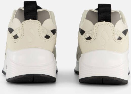 Verhoog je sneakerstijl met de sportieve Skechers Uno Gen 1 Color Surge sneaker voor meisjes. De beige sneaker heeft stijlvolle zwarte en grijze accenten, met een comfortabele Air-Cooled Memory Foam binnenzool. Ontworpen met gewatteerde enkels en een versterkte hiel voor extra ondersteuning, zijn deze sneakers perfect voor de hele dag