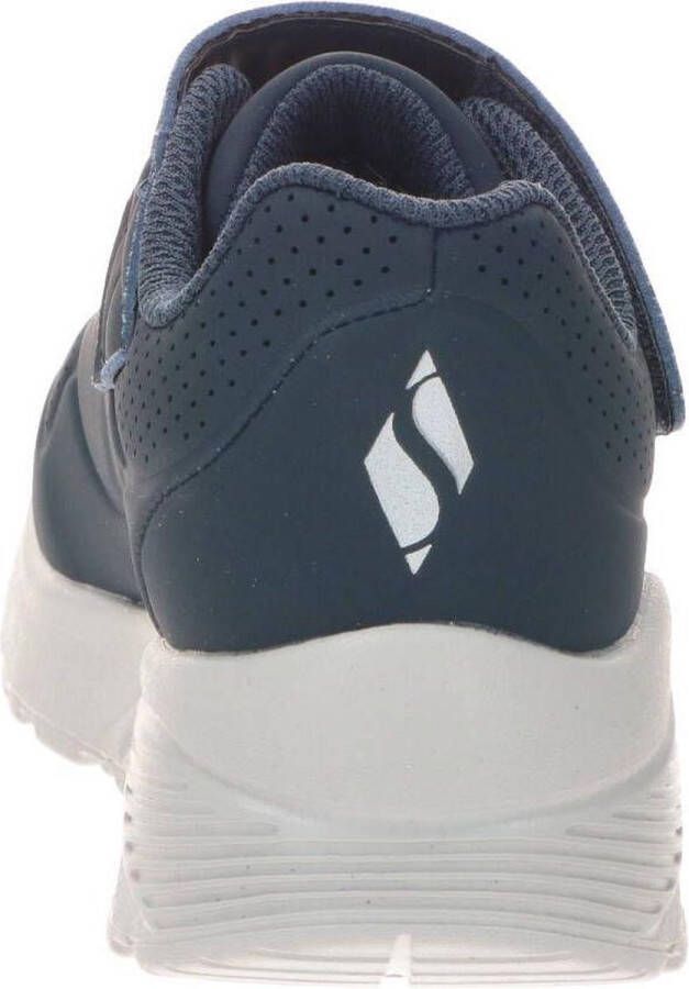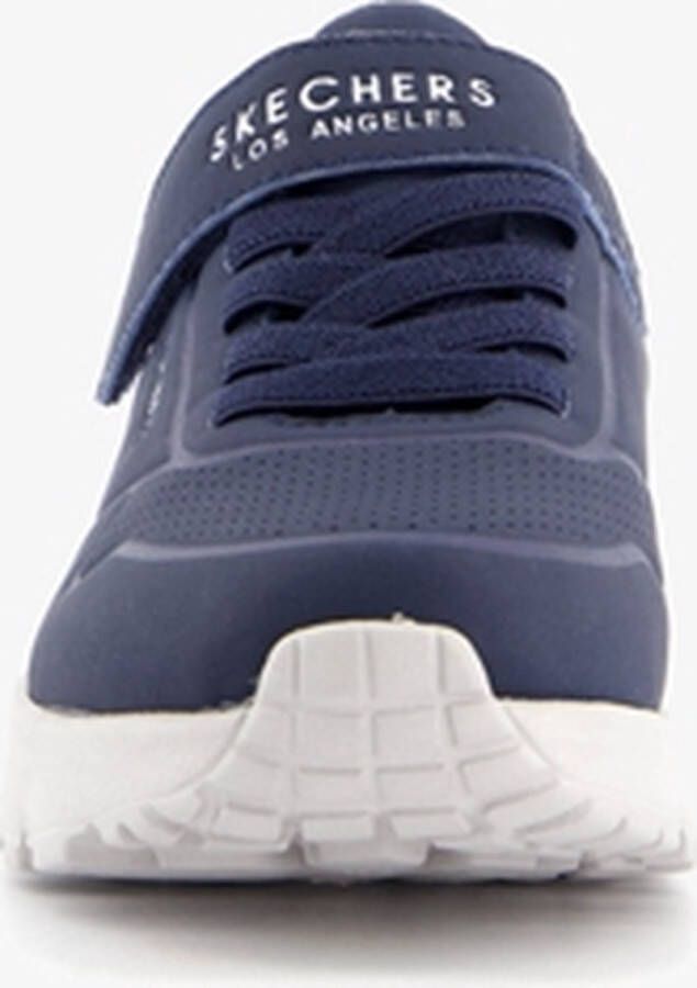 Blauwe Skechers Uno Lite - Vendox sneakers voor jongens. Gemaakt van imitatieleer, een binnenwerk van textiel en een rubberen zool. De sneakers hebben elastische veters met klittenbandsluiting voor een makkelijke instap. Het voetbed is gemaakt van textiel. Deze bevat memoy foam voor extra comfort en is uitneembaar