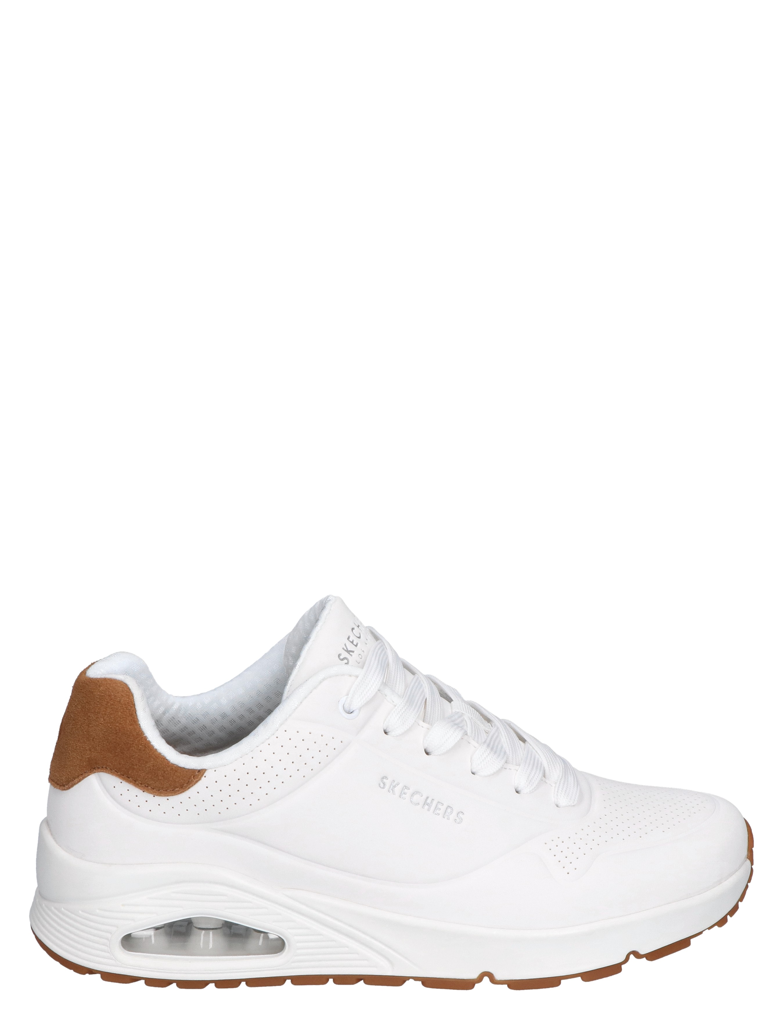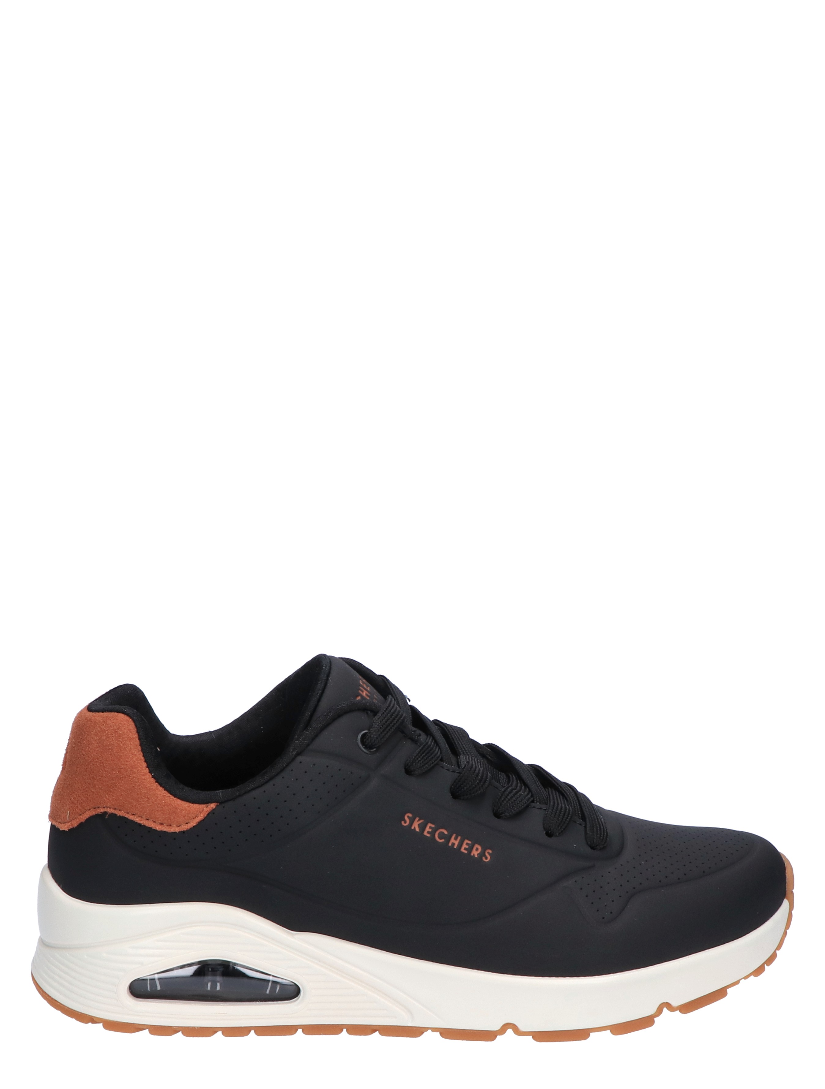 Skechers Uno Suited On Air Skech Air lage sneaker voor heren. De Skechers Street Uno - Suited On Air combineert een sportieve, elegante stijl met het vertrouwde Skechers comfort. Deze klassieke joggingstijl met veters heeft een durabuck bovenwerk met relif en een sude hielrand op een Skechers Air-Cooled Memory Foam-binnenzool en een Skech-Air-tussenzool met zichtbareairbag.