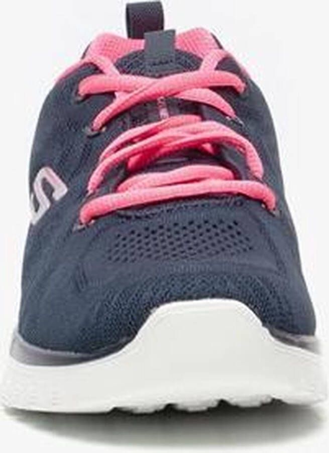 Blauwe Skechers Graceful Get Connected sneakers voor dames. Gemaakt van textiel, een binnenwerk van textiel en een stevige profielzool. De sneakers hebben een vetersluiting en aantreklusje op de hak voor een makkelijke instap. Het vaste voetbed is gemaakt van textiel en bevat memory foam voor optimaal comfort. Voorzien van merkopdrukken op het bovenwerk en roze accenten. De Skechers sneakers hebben een flexibele buitenzool die grip en demping biedt.