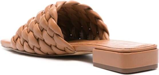 karamelbruin kalfsleer gladde korrel geweven design zool met logo vierkante open neus leren binnenzool met logo leren buitenzool gesegmenteerde rubberen zool slip-on stijl