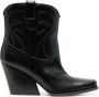 Zwart, imitatieleer, westernstijl, discrete stiksels, dubbele ritssluiting, vierkante neus, slip-on stijl, enkellengte, Cubaanse hak en zool van imitatieleer. .