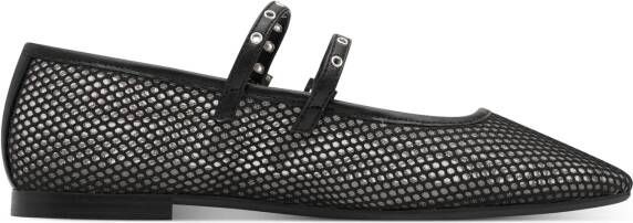 Ontdek de elegante verfijning van deze ballerina's, die state-of-the-art variteit en gedistingeerd design combineren in een harmonieus totaalbeeld. De stijlvolle combinatie van mesh en kunstleer in elegant zwart en glinsterend metallic geeft je outfits een avant-gardistische touch. Met een platte, stabiele zool en de opvallende gespen zijn ze geschikt voor zowel feestelijke gelegenheden als avondevenementen. Geniet van de bijzondere uitstraling en veelzijdigheid die deze luxe ballerina's je bieden.