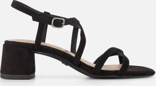 Verhoog je stijl met deze elegante zwarte Tamaris Vegan hoge hak sandalen. Gemaakt van vegan sude materiaal, hebben deze sandalen een comfortabele hakhoogte van 5 cm en sluiten met een gesp