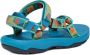 deze Teva Hurricane XLT2 sandaal heeft een buitenkant van textiel en een platte zool de binnenkant is van textiel de sandaal sluit met klittenband en is gemaakt voor jongens en zit comfortabel
