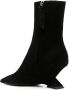 Zwart, kalfsleer, puntige neus, verborgen ritssluiting aan de zijkant, enkellengte en halfhoge geschulpte hak.