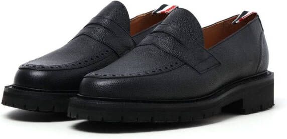 Thom Browne Penny Loafer With Leather Sole In Black Pebble Grain Zwart