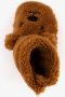 Hoge, bruine sloffen in de vorm van een beertje. De sloffen zijn lekker zacht en hebben een warme voering. Aan de achterzijde zit een klittenbandsluiting voor een aansluitende pasvorm. De zachte zool bevat antislip zodat je kind niet uitglijdt. De schattige sloffen hebben oortjes aan de zijkant en een gezicht op de neus.