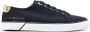 Pruisisch blauw, optisch wit, goudkleurig, canvas, tong met logoprint, logoprint aan de zijkant, contrasterende hak, binnenzool met merk, ronde neus, vetersluiting aan de voorkant en platte rubberen zool.