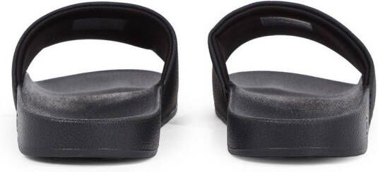 Design: Profielzolen, Elastische inserts; Type sluiting: Slip; Motief: Logoprint; Materiaal: Imitatieleer; Schoenneus: Open toe; Extra's: Stevige stof, Flexibele zool