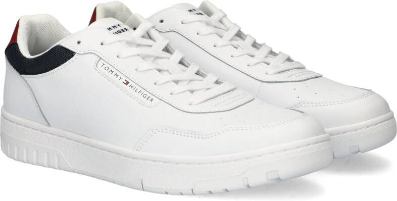 Tommy Hilfiger Basket Core Lite sneakers voor heren in het wit. Gemaakt van leer met bedrukt logo, ronde neus, platte hak, textiel binnenzool, rubberen buitenzool, vetersluiting. Materiaal: 70% leer, 20% polyamide, 10% polyurethaan