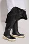 Blijf stijlvol en droog met de zwarte en witte Hurricane regenlaarzen van Tory Burch. Deze Wellingtons hebben een zwarte logo-applicatie aan de zijkant en verhoogde logo-details aan de achterkant, rustend op een khaki rubberen zool. De brede lage hak en leren materiaal maken ze perfect voor een bohemien of verfijnde stijl, terwijl het effen patroon en rubberen stof ze geschikt maken voor semi-formele gelegenheden en winterweer. Met een zoolhoogte van 2, 5 cm en een hoogste punt van 4 cm zijn deze laarzen zowel praktisch als modieus. Productstijl-ID: 83854.