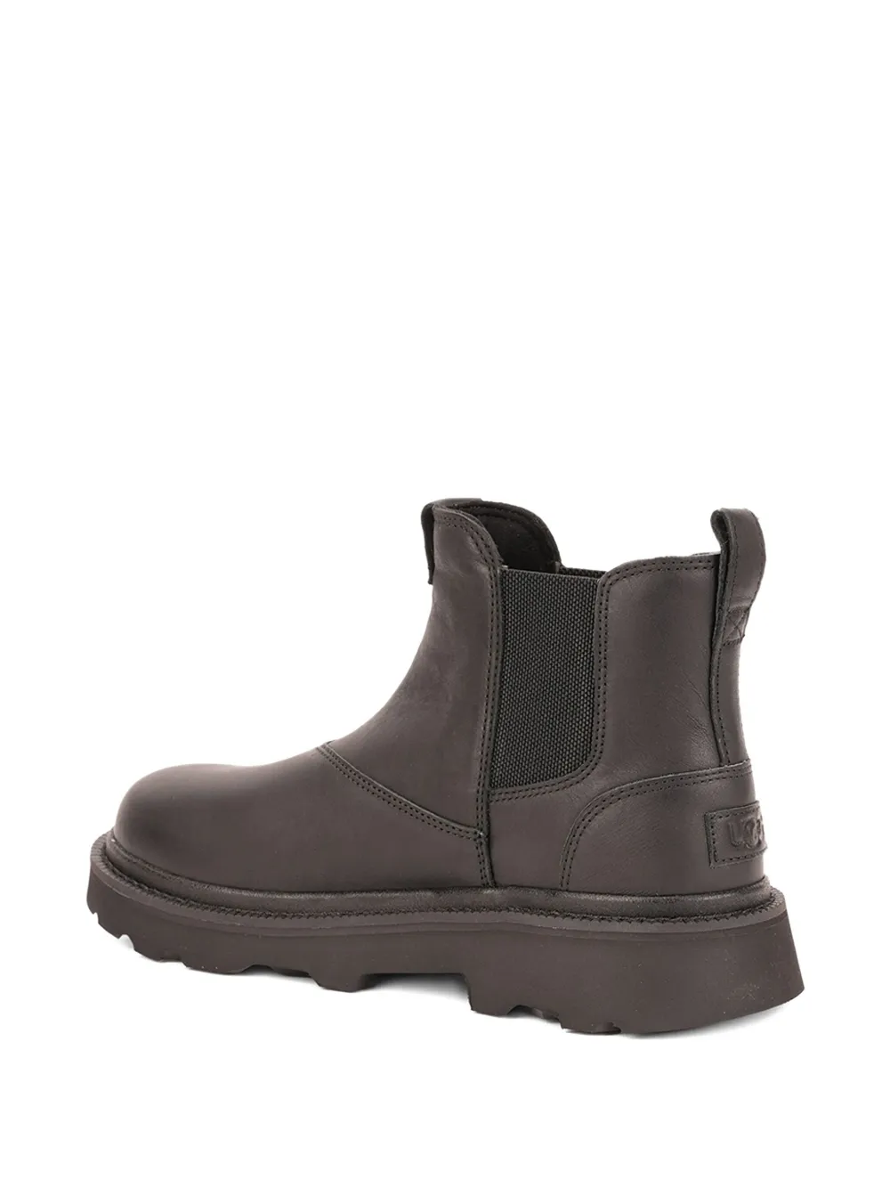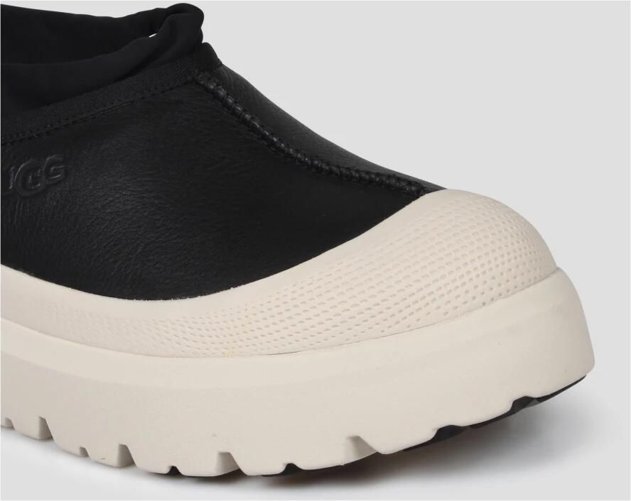 zwart elastische vlakken aan de zijkant treklus geribbelde zool ronde neus enkelhoogte
