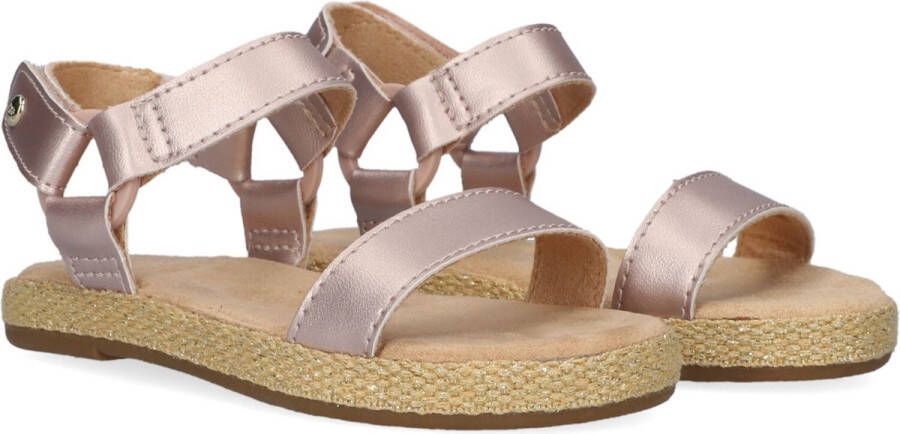 Straal met deze metallic roze sandalen Rynell uit de collectie van het merk UGG. Het bandje om de enkel is voorzien van een goudkleurige merkstud en een klittenbandsluiting. Het binnenwerk heeft een voering van suèdelook textiel en de zoolrand van gevlochten touw geeft de sandaal een zomerse touch. Dankzij de rubberen loopzool heeft jouw kleine meid een goede grip.