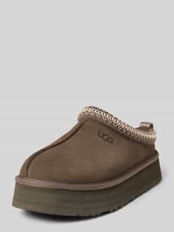 Instappers van UGG voor dames;Echt leer;Afgeronde punt;Model 'TASMAN ALPINE';Voering van imitatiebont;Profielzool;Schachthoogte bij maat 40: 6 cm