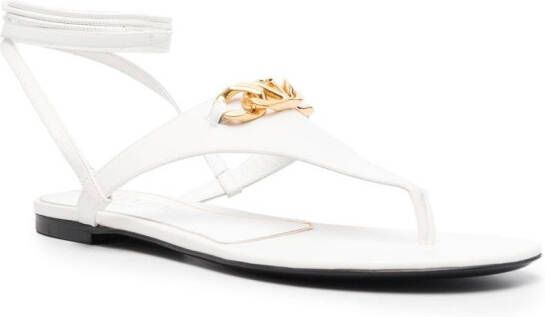 Wit, kalfsleer, VLogo kenmerk, goudkleurig materiaal, T-bandje en enkelbandje met striksluiting.