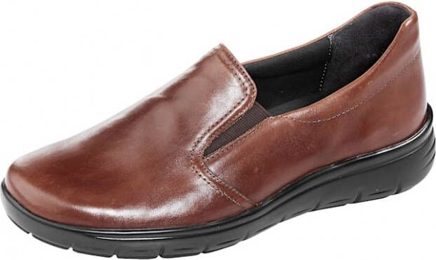 Deze klassieke instapper van stijlvol glad leer heeft absoluut een plekje in uw schoenenkast verdiend. Verwisselbaar voetbed, geschikt voor losse inlegzolen. Platte hak van 3, 5 cm. Profielzool. Gepolsterd, schokdempend. Geen sluiting. De schoenmaat wordt aangegeven in Engelse maten.