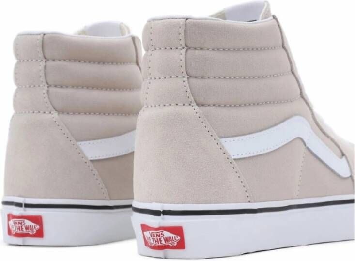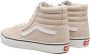 Het bekende UA Sk8-Hi Dames model is door Vans vernieuwd en voorzien van een moderne EcoDry-technologie, waardoor water van deze sneakers af glijdt en jij geen last hebt van natte voeten. Deze beige hoge sneaker van zacht suède en canvas heeft de welbekende, witte Vans Sidestripe op de zijkant, een rubber logo op de zoolrand, een textiel merklabel op de tong en een binnenwerk van leer in combinatie met canvas textiel. Het vaste voetbed heeft een gecombineerde constructie van schuim en rubber voor de perfecte combinatie van comfort en grip. De gevoerde en doorgestikte enkelkraag biedt ondersteuning en flexibiliteit en de rubberen zool met wafelprofiel biedt grip bij het lopen.