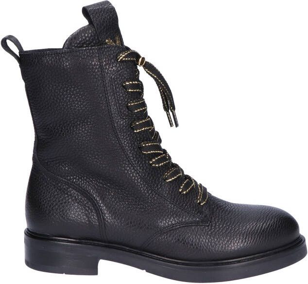 VIA VAI Juliette Abby 62159 veterboot voor dames. Een paar tijdloze zwarte veterboots als Juliette Abby met je gewoon in de kast hebben staan. Deze all-season boots zijn stoer, stijlvol en eindeloos te combineren. De veters zijn afgewerkt met een subtiele gouden draad en metalen vetersluiter als finishing touch, wat deze laarsjes nt wat specialer maakt. Door het zijritsje trek je de laars eenvoudigaan