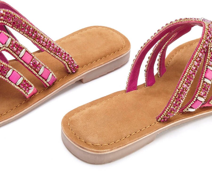 Vivance Teenslippers Sandaal, pantoffel van leer met siersteentjes