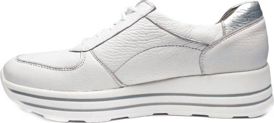 WALDLAUFER artikel/model 758009 200 150 (H) LANA hirsch weiss silber zijn brede damesschoenen orthopedische comfort sneaker uit de nieuwe lente/zomer 2021 collectie van het bekende Duitse schoenenmerk Waldlaufer. Deze Waldlaufer H-Lana sneaker heeft een upper design in wit soepel hertenleder + zilver metallic details en staat op een 3 cm dikke gestreepte plateauzool. De Waldlaufer H-Lana heeft een brede H-wijdte leest voor de ietwat bredere voeten en heeft een los uitneembaar voetbed dat perfect kan vervangen worden door eigen steunzolen of als het weggenomen wordt voor nog eens extra veel volume zorgd voor zware of opgezwolen voeten. Deze super comfortabele sneaker heeft een ultra licht gewicht en is voorzien van veters + rits. In en uitstappen was nog nooit zo gemakkelijk! Bovendien is deze sneaker ook binnenin gevoerd met hertenleder. Ultiem comfort aan een democratische prijs!Steunzolen: JaGelegenheid: SportiefHakhoogte: 20 mmMateriaal: LederVoering: LederSluiting: Rits + vetersWijdte: H-wijdExtra: Orthopedisch/comfort