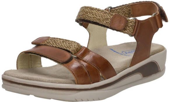 Wolky sportieve en comfortabele dames sandaal. Deze sandaal van Wolky heeft als artikelnummer: 0105631-430 en de modelnaam is Acula. De kleur is cognac oftewel bruin in het soft savana leather oftewel glad leer. De sandaal heeft verschillende verstelbare klittenbanden zowel op de voorvoet, wreef als bij de hiel. De voering van leer met een comfortabel leder voetbed.