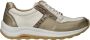 Kies voor comfort met deze leren Wolky Comrie Torello veterschoen voor dames. De beige schoen heeft mooie metallic gouden accenten en een dierenprint.
