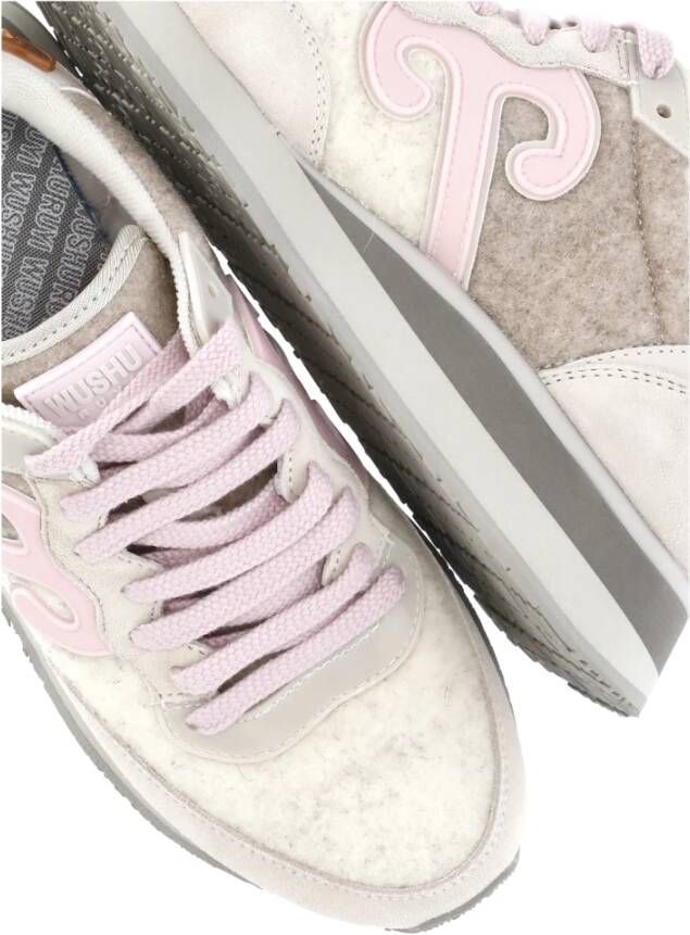 Upgrade je sneakercollectie met deze beige Wushu leren en stoffen damessneakers. Met een ronde neus, logotab aan de tong, vetersluiting, wollen inzetstuk, zijdelings Ruyi-logo en verhoogde rubberen zool (4 cm). Ware maatvoering.