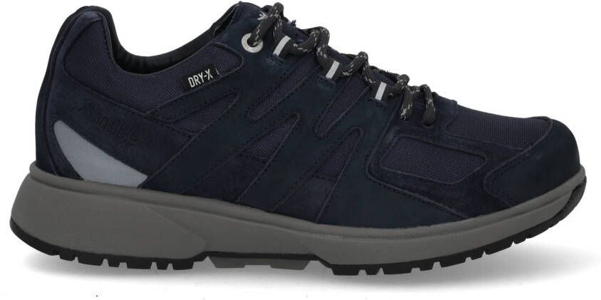 Xsensible Bergen 40409.5 casual veterschoen voor heren in H-wijdte (breed) in de kleur blauw.Functioneel en fraai! Met deze nieuwe lichtgewicht hiking-sneakers is bewegen leuk. Hoogwaardig leer in combinatie met elastische hightech materialen en het gentegreerde Dry-X membraan maken deze sneakers geschikt voor alle soorten weer. Reflecterende details verhogen de zichtbaarheid.Xsensible StretchwalkerDe Stretchwalker technologie is genspireerd op het balansprincipe van traditionele Japanse houten slippers. Deze gepatenteerde zool biedt een optimale loopervaring en draagt bij aan een betere lichaamshouding. Geen pijnlijke of vermoeide voeten meer, dankzij de combinatie van evenwicht, stabiliteit en sublieme demping in de gehelezool