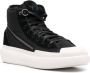 Zwart, ritssluiting, vetersluiting aan de voorkant, tong met logoprint, ronde neus, logo op het hielstuk, oversized rubberen zool en platte zool.