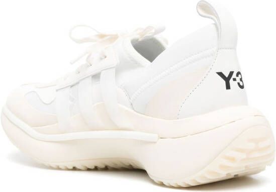 Wit, crmewit, kalfsleer, dubbele ritssluiting, chunky rubberen zool, logo op het hielstuk en slip-on stijl.
