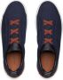 Indigo, katoen, leren afwerking, denim, logo-relif op de tong, ronde neus, vetersluiting aan de voorkant en platte rubberen zool.