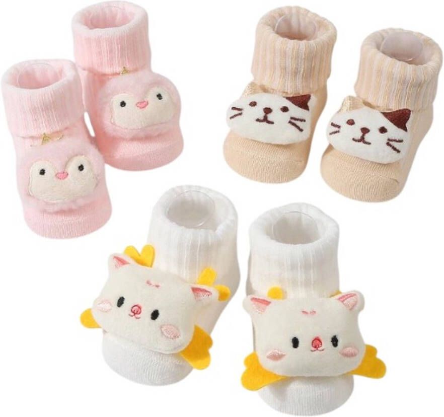 Zonder merk S&E 3 Paar Baby slofjes met Pluche Speelgoed Cartoon Design Wit